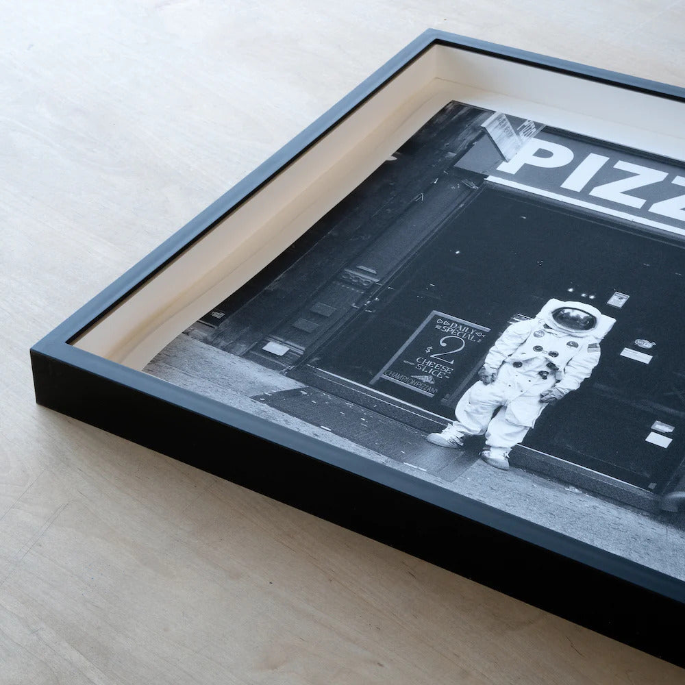 Andy's spaceman/astronaut series has become one our most popular collections, since the inception of the brand. Each backdrop represents iconic landmarks in NYC, 'Space Slice' in the number one print in this series to date. It was photographed in the West Village outside the iconic 'Joe's Pizza'. Core collection. Embossed Andy signature in bottom right hand corner. Photograph printed in Andy's Brooklyn studio on 80lb (215gsm) cotton paper. This work is a Giclée print: Giclée is a process that uses a 12 colour inkjet printer, acid-free papers, and pigment-based archival inks.