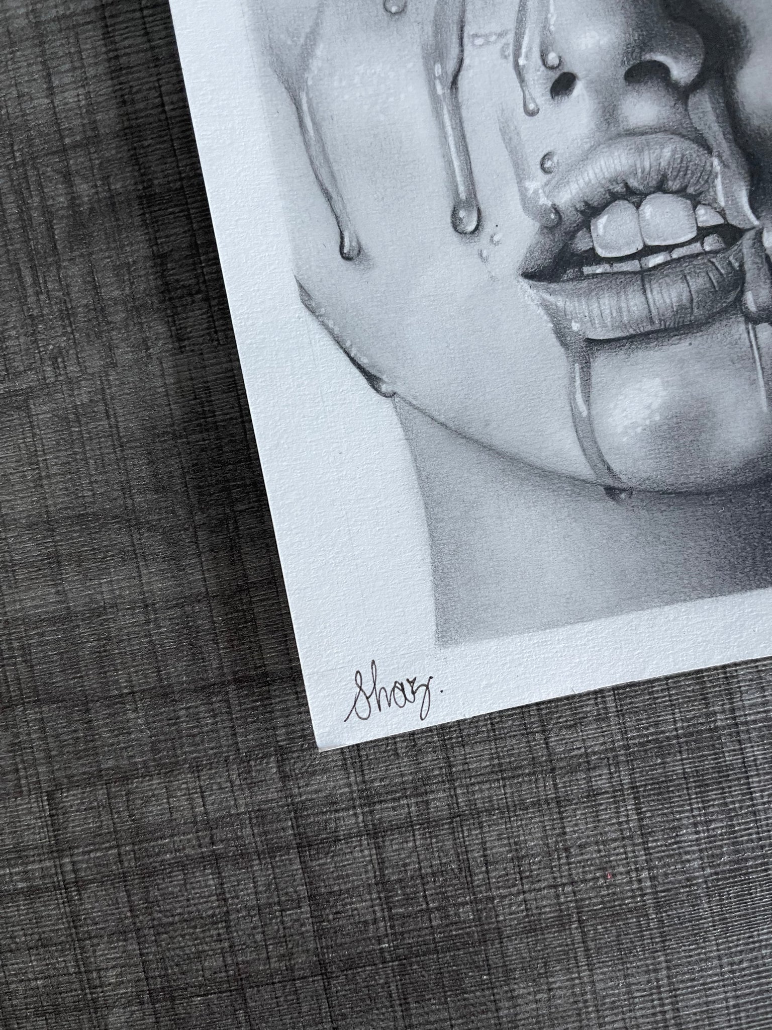 Honey is a beautiful series of pencil art done by the talented Shan Carmin. Each piece captures the delicate and precise beauty of these woman, with stunning attention to detail. The use of shading and texture creates a sense of depth and dimension, bringing each artwork to life.